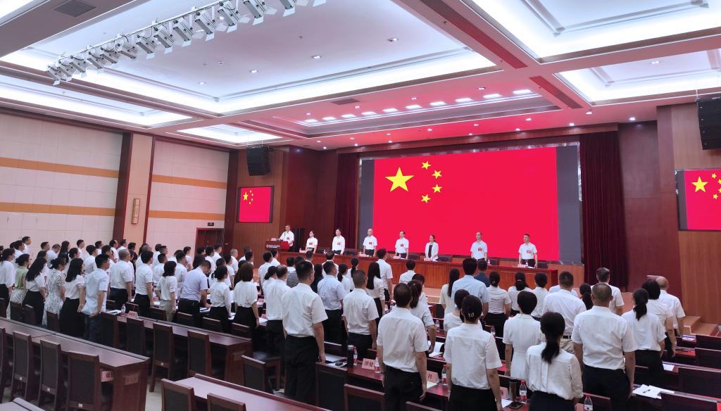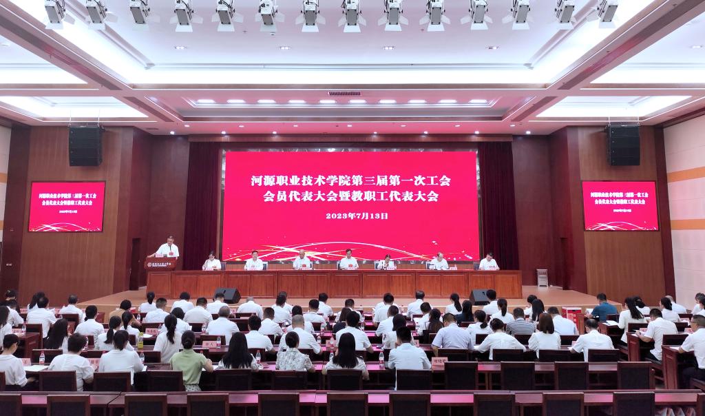 7月13日上午,在雄壮嘹亮的国歌声中,三届一次“双代会”正式开幕。来自学校教学、科研、管理等部门的107名代表出席会议。河源市总工会党组成员、经费审查委员会主任黄燕霞到会指导。