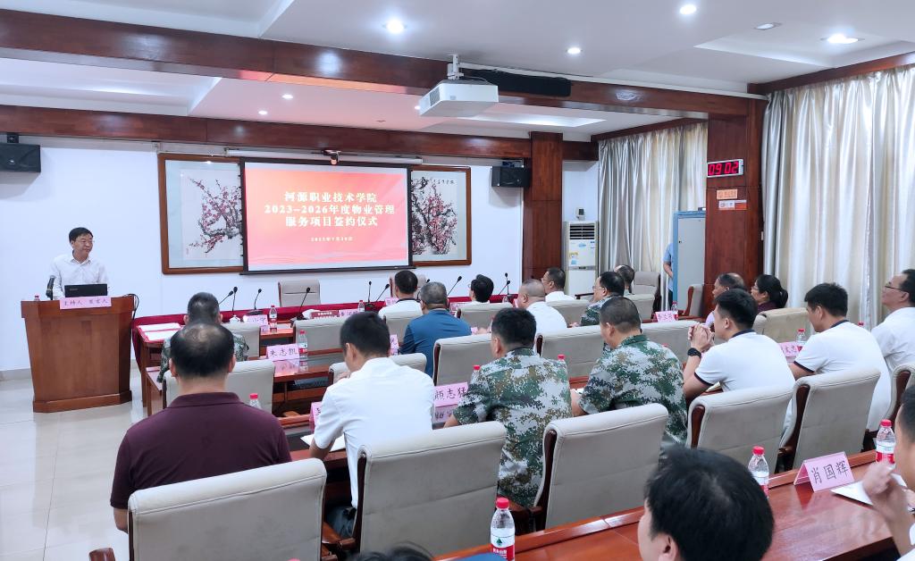 2023年7月20日,必一手机登录入口2023-2026年度物业管理服务项目签约仪式在行政楼第一会议室举行。韦荣书记、赖小景副校长、王小宁副校长、广东华信服务集团有限公司代表、东莞市明安保安服务有限公司代表及相关处室相关人员出席了签约仪式。签约仪式由王小宁副校长主持。