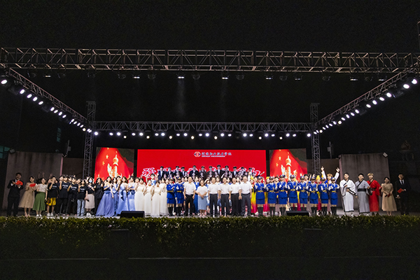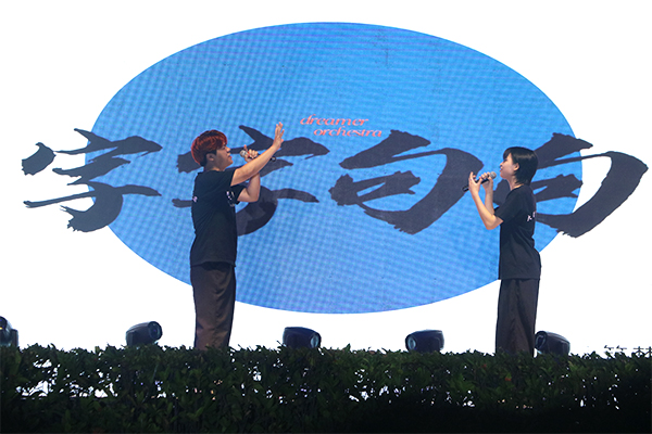 在筑梦乐团、梦寐乐队洋溢着青春激情的暖场节目后,韦荣书记、叶国英副书记、王小宁副校长、袁光华副校长、姚家芳副校长共同上台为本届文体艺术节开启帷幕。