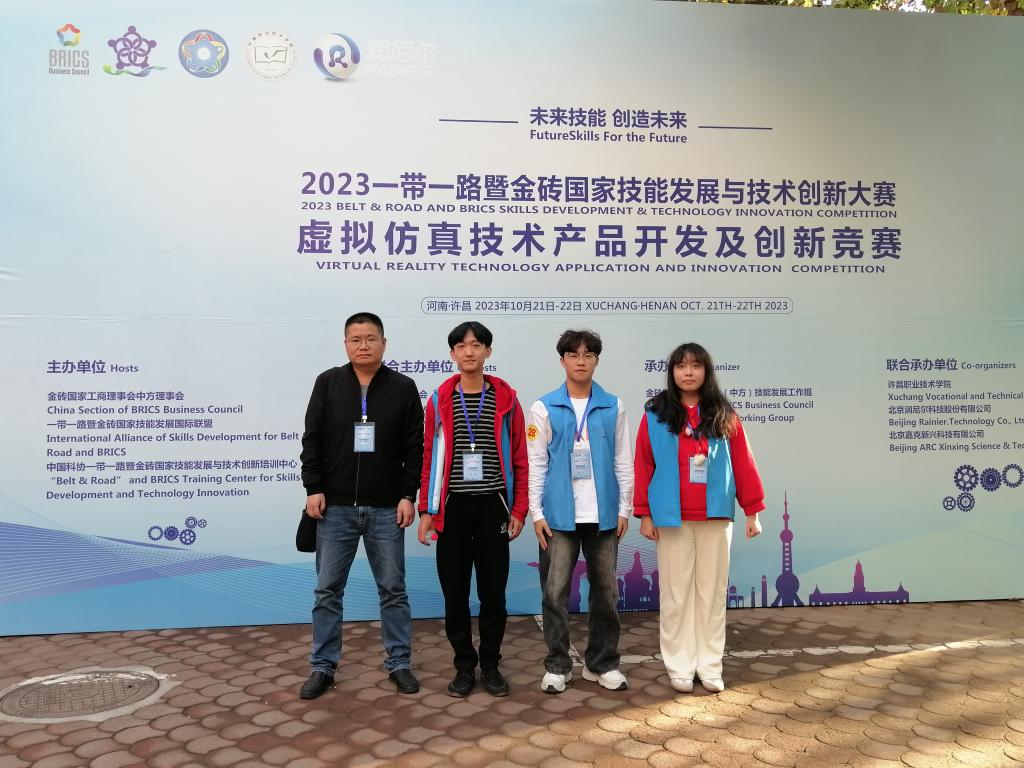 10月21日-22日,2023年一带一路暨金砖国家技能发展与技术创新大赛之首届虚拟仿真技术产品开发及创新赛项总决赛在河南省许昌职业技术学院举行。我校数字媒体技术专业刘俊霖、陈楚涛、何利利三位同学组成的必一手机登录入口参赛队参与了赛项总决赛。