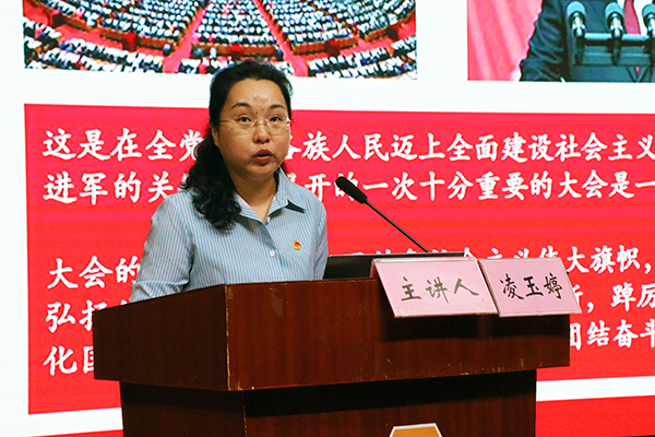开班仪式结束后,团市委学少部凌玉婷部长作“永远跟党走,奋进新征程”专题讲座。凌玉婷部长通过讲述中国共产主义青年团在南京的百年奋斗史,弘扬青春、奋斗、昂扬的主旋律,以贴近学生生活、富有时代风貌的史料,展示不同时期团员青年群体的奋斗历史,反映一代又一代团员青年在中国共产党的领导下,在团组织的号召下,在推动时代进步、历史变迁过程中敢想敢干、勇于创新的精神风貌,让今天的青马学员更好地了解先辈们青年时期的历史功绩,激励其爱国使命感与责任感,更加坚定了凝心聚力跟党走,砥砺奋进续华章的决心。
