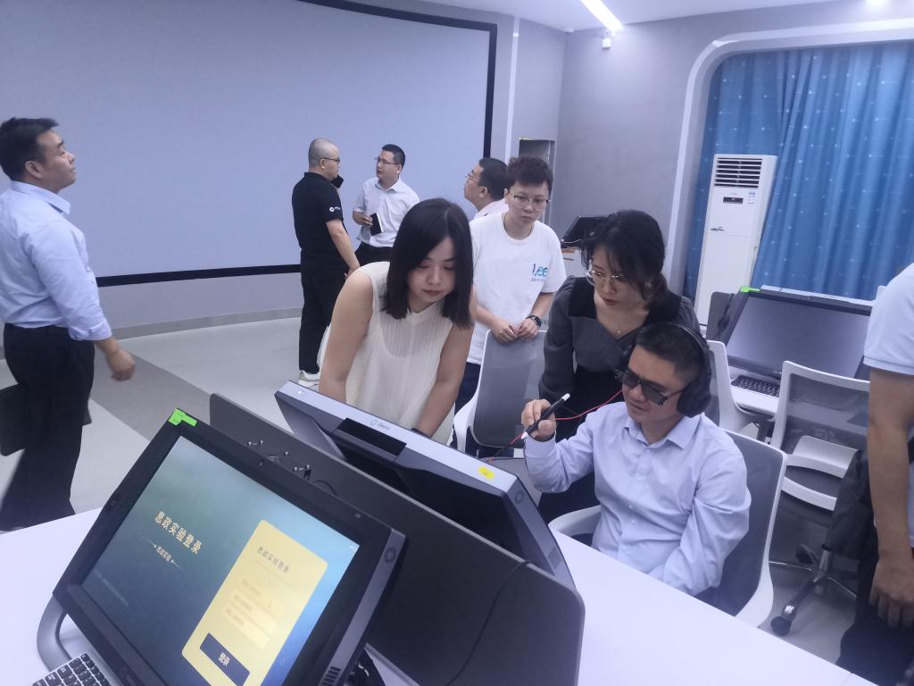 随后,在番职院教育技术与信息中心主任黄中伟等人员的陪同下,袁光华一行参观了公共虚拟仿真实训基地,并在现场进行了体验和交流。在交流中,番职院技术人员介绍了公共虚拟仿真实训基地建设成效;并从数据标准、数据汇聚、数据开发、数据服务、数据质量、数据可视化等方面介绍了数据治理的过程以及成效,体现了数据治理对高校的科学决策、对高校的高质量发展的至关重要性。