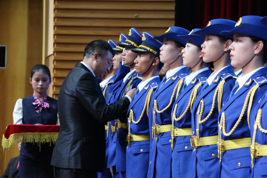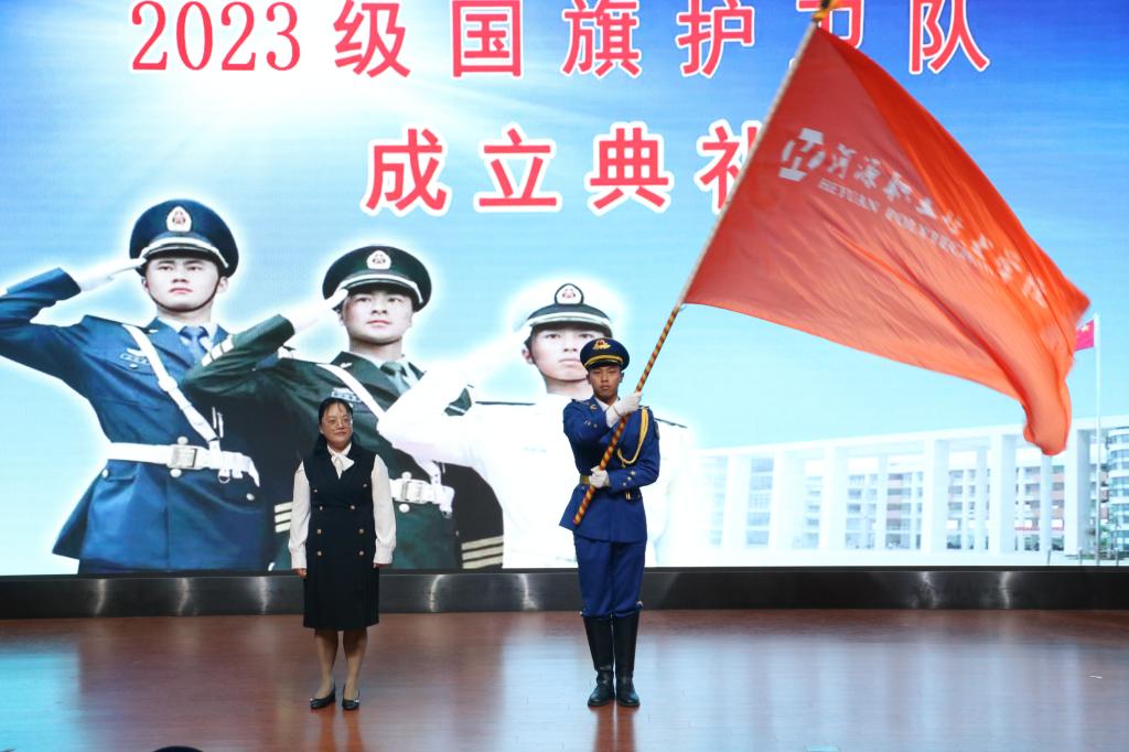 党委委员、汤剑冰主任为国旗护卫队颁授队旗
