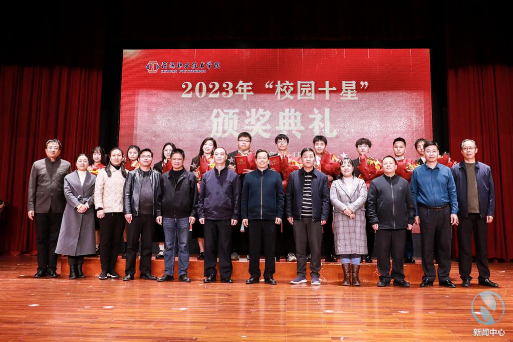 1月4日,我校在艺术楼演播厅举行2023年“校园十星”颁奖典礼。校领导,部门负责人,学工队伍,2023年“校园十星”及入围奖、提名奖获得者,各二级学院学生代表参加本次颁奖典礼。