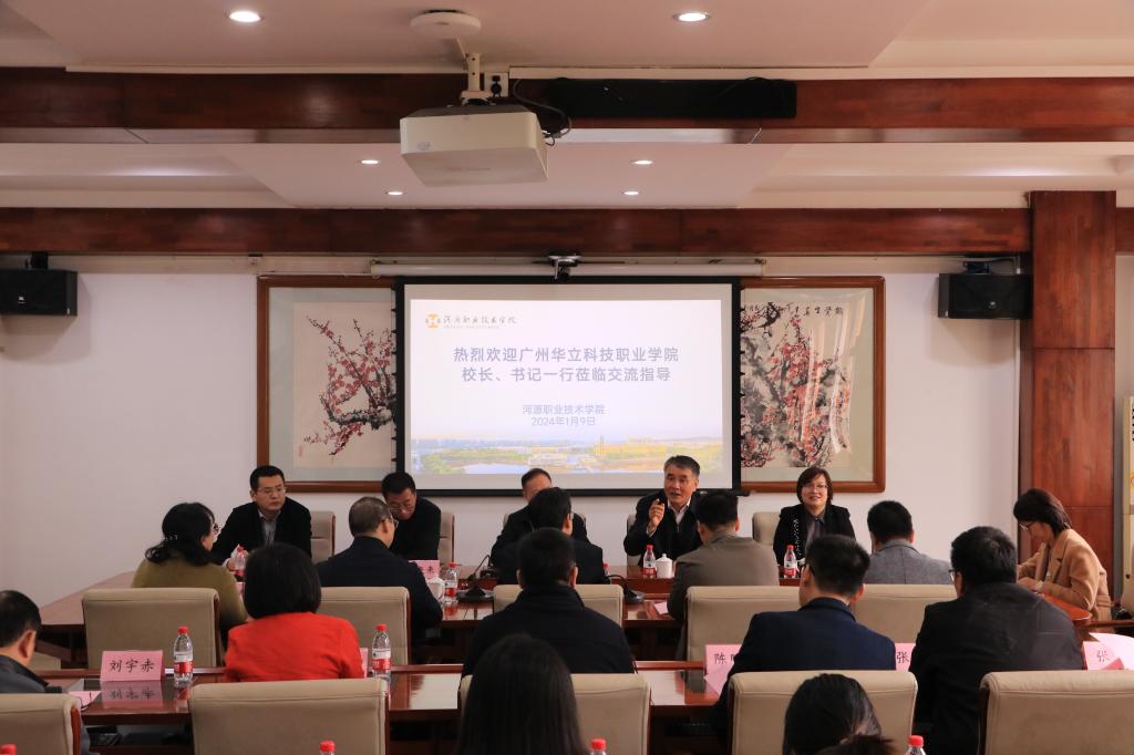 1月9日,广州华立科技职业学院陈德清校长、陈良声书记一行28人莅临我校参观交流,全体校领导陪同参观。