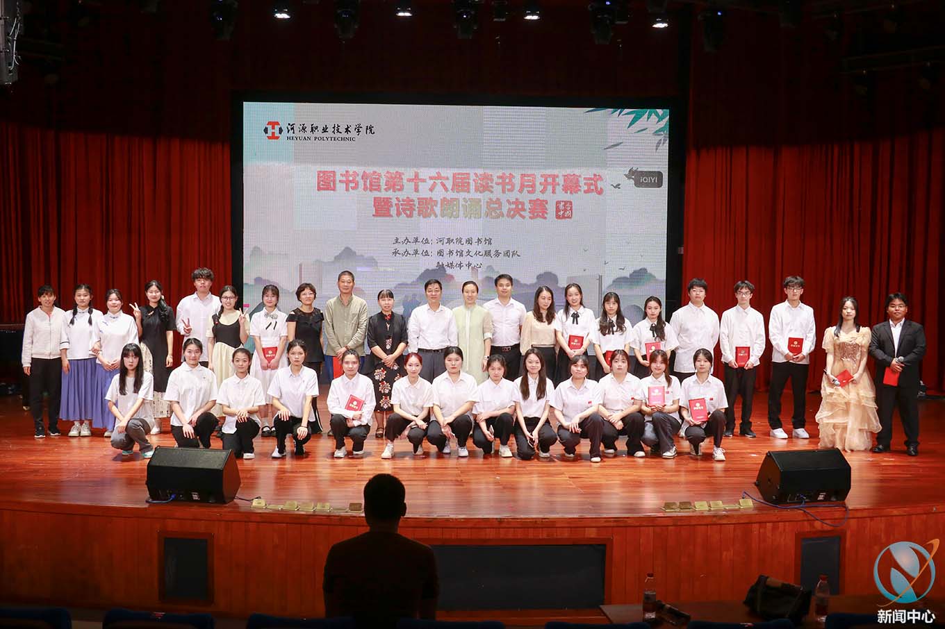4月23日,我校在艺术楼演播厅举办第十六届读书月开幕式暨诗歌朗诵比赛总决赛。副校长王小宁,中国作家协会会员、广东现代作家研究会理事邓醒群老师,图书馆全体人员,郑尔君副教授等评委老师以及各二级学院学生代表参加活动。