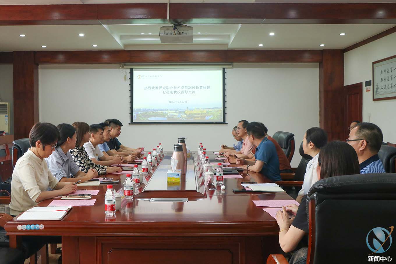 2024年5月22日上午,罗定职业技术学院副校长莫秋婵带领该校教务处、学生工作处和相关领导一行10人来校交流。我校袁光华副校长、教务处、质量管理部、学生工作处有关人员在行政楼第二会议室接待了来访人员,双方进行了深度交流。