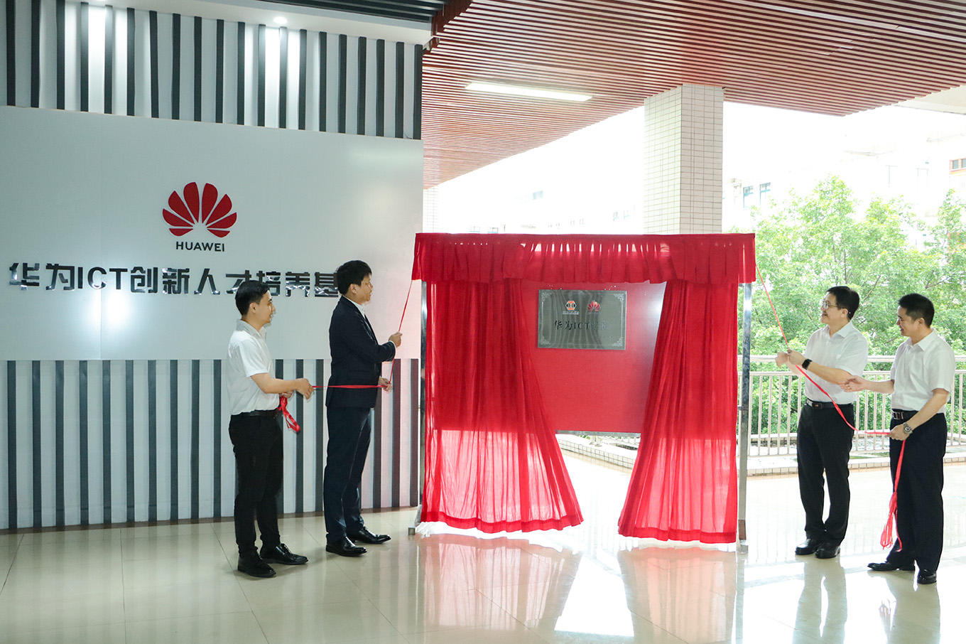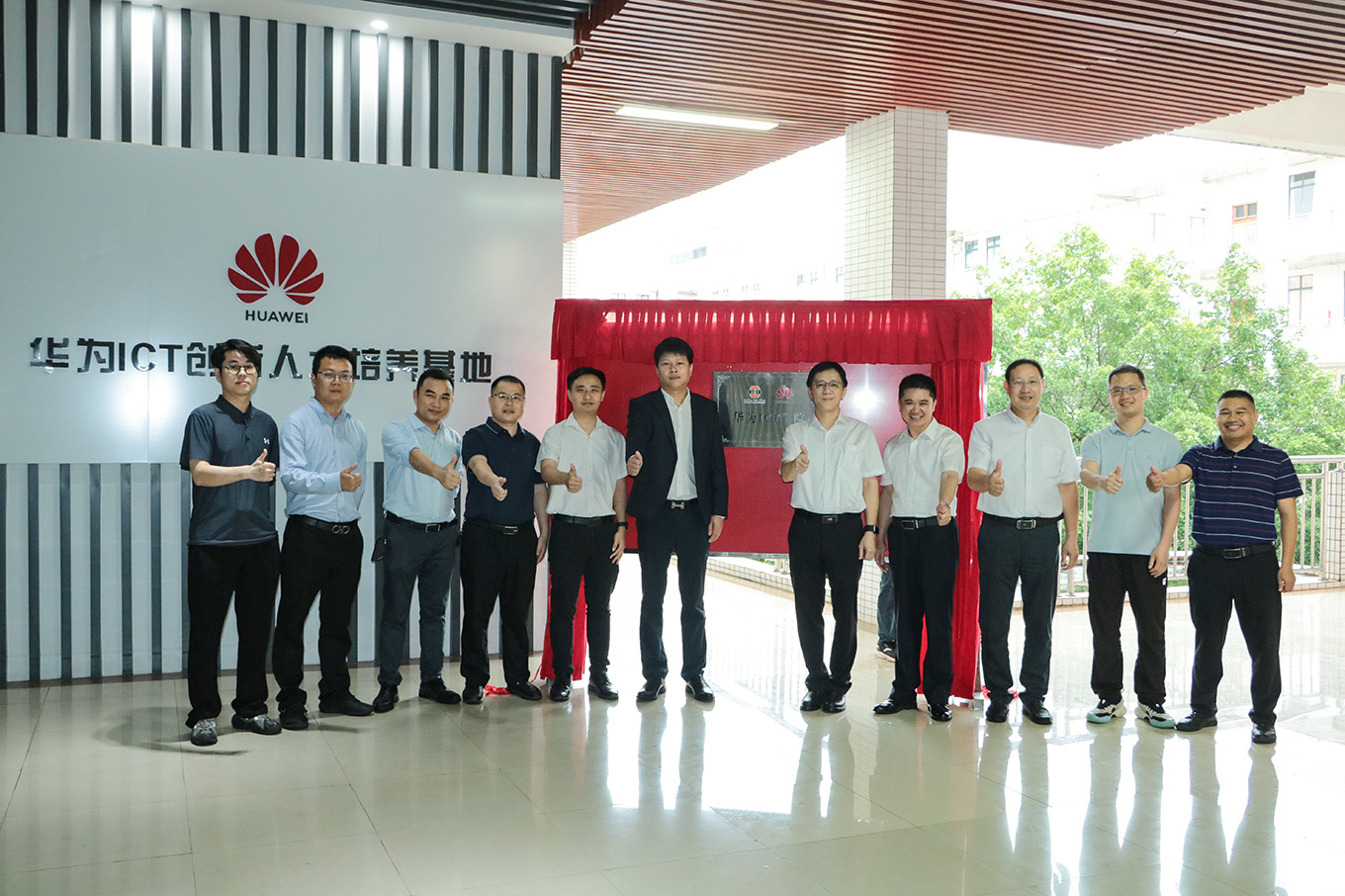 为推动产教深度融合,促进我校电子信息类专业发展和人才培养质量提升。2024年5月24日,我校在电信学院举行华为ICT学院揭牌仪式。出席人员有学校校长刘贻新、副校长袁光华、华为广东政企粤东区域总经理吴俊平、广州腾科网络技术有限公司产教融合事业部总监吴嘉诚及电信学院相关人员和企业代表。