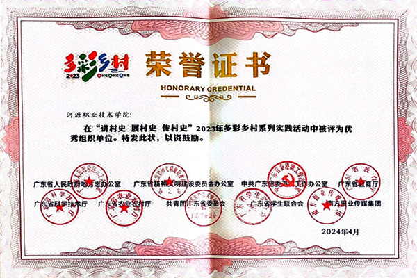近日,我校在广东省人民政府地方志办公室、广东省精神文明建设委员会办公室、广东省教育厅、广东省科学技术厅、广东省农业农村厅、广东省人民政府港澳事务办公室、共青团广东省委员会、广东省学生联合会、南方报业传媒集团联合组织的“讲村史 展村史 传村史”2023年多彩乡村系列实践活动中被评为优秀组织单位,薪火传承社会实践服务队被评为省级重点团队,师生荣获歌舞作品一等奖1项、摄影作品三等奖3项及优秀奖3项等七个奖项。