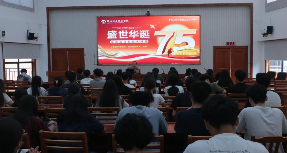 10月8日,我校在行政楼C108会议室举行新中国成立75周年发展历程与重大成就宣讲报告会。活动由我校党委委员、宣传部部长赖新优主讲,宣传部全体人员和融媒体中心同学参加。