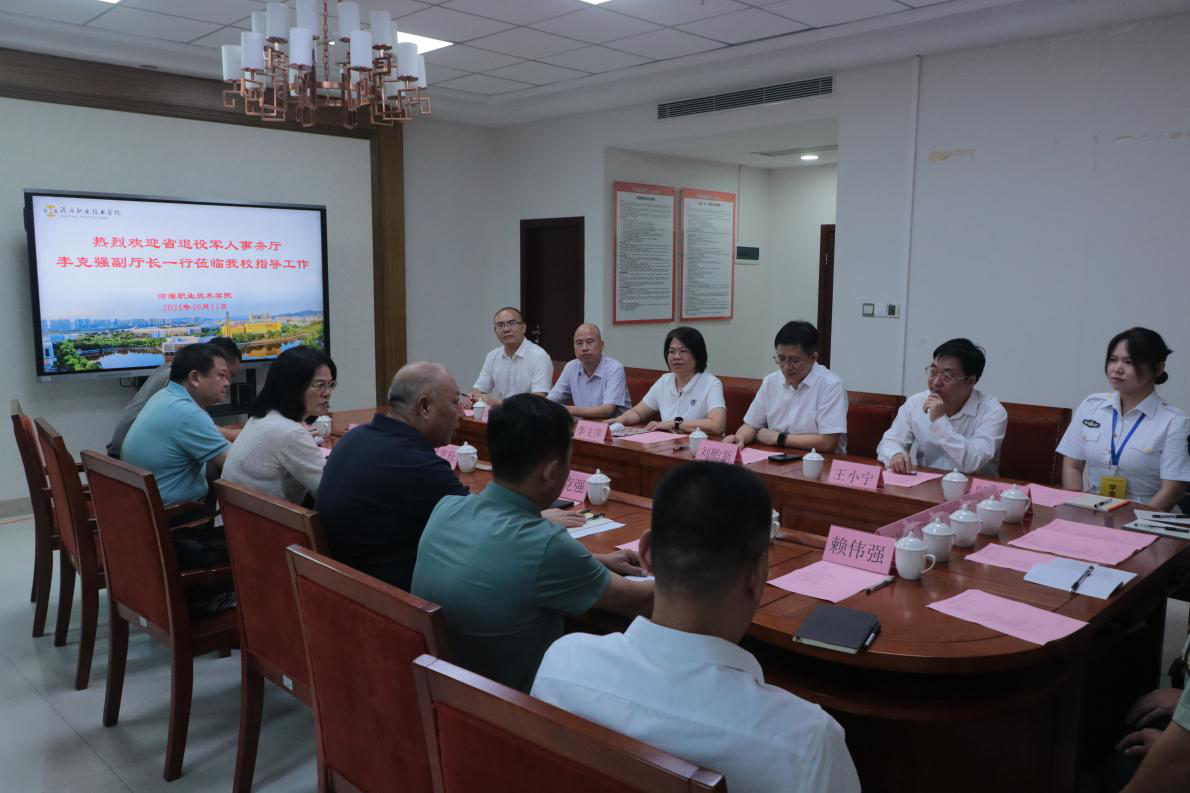 10月11日,省退役军人事务厅李克强副厅长率队调研我校退役军人培训工作,刘贻新校长、王小宁副校长,市退役军人事务局吴艺珍局长等陪同调研。