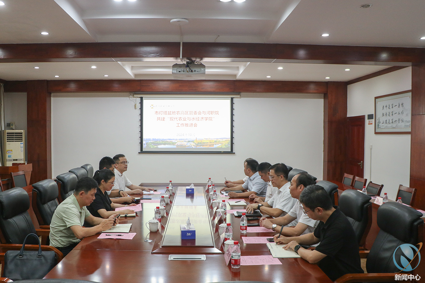 为推进落实现代农业与水经济学院共建工作,10月15日,河源市灯塔盆地农高区管委会主任张春慧一行来访我校,刘贻新校长、袁光华副校长携人事处、教务处、财务处、资产后勤处及现代农业与水经济学院筹建小组等相关人员,与农高区管委会领导深入坦诚交流,探讨双方合作前景。