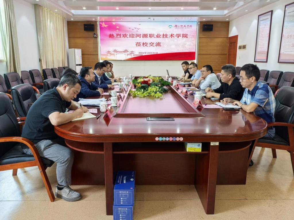 10月31日,袁光华副校长率教务处和现代农业与水经济学院筹建小组相关人员前往韩山师范学院就三二分段专本协同育人事宜进行学习交流,韩山师范学院教务部袁德辉部长、化学与环境工程学院林文杰院长、生命科学与食品工程学院王忠合副院长、招生办公室罗永典副主任、协同培养科洪放科长等参加了交流活动。