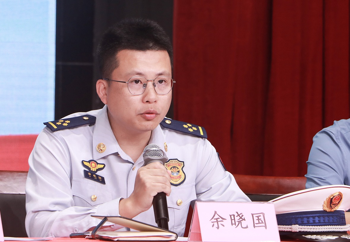 余晓国大队长宣读2024年江东新区消防宣传月活动方案,对活动提出四点要求:一是要高质量部署消防宣传月活动;二是要立体化营造消防宣传知识氛围;三是要结合行业特点开展活动;四是要面对面的开展消防宣传服务。