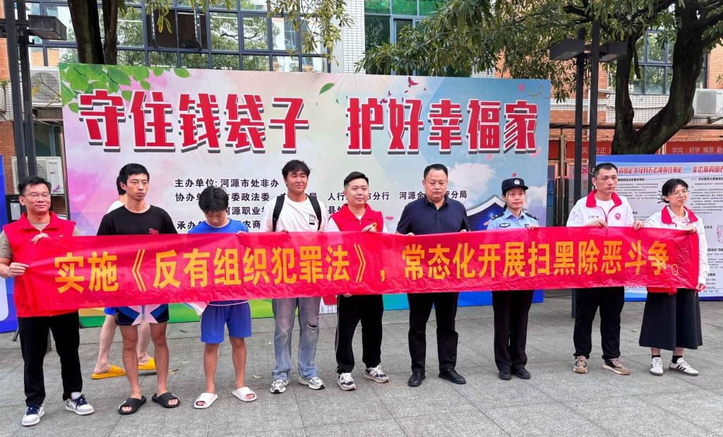为加强防范非法集资宣传教育,结合扫黑除恶行业整治、电信网络诈骗、预付费、互联网金融等领域整治工作,进一步提高师生对非法金融活动的识别能力和防范意识,11月15日,我校保卫处联合河源市处非办、市委政法委、市公安局、人行河源市分行、河源金融监管分局等部门举办以“守住钱袋子 护好幸福家”为主题的防范非法集资宣传活动,合力提高我校师生的金融风险防范意识,营造安全和谐的校园环境。