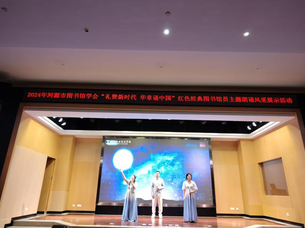 25日下午,一场以“礼赞新时代 华章诵中国”为主题的红色经典图书馆员主题朗诵风采展示活动在河源市图书馆成功举办,来自河源市图书馆、必一手机登录入口图书馆及五县一区图书馆的12支队伍齐聚一堂,共同演绎了多部饱含深情的经典作品。活动中,我校图书馆的表现尤为亮眼,朗诵作品《月光下的中国》以其深刻的主题和精湛的艺术表现力荣获一等奖,另一作品《可爱的中国》获得二等奖。这不仅是对参赛者个人能力的认可,也是对我校图书馆在公共文化服务领域卓越贡献的肯定。