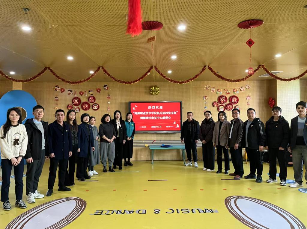 2025年1月7日,我校机关第四党支部全体党员在支部书记陈艳芳的带领下,前往河源市源城区残疾人康复中心,开展了一场以“关爱慰问特殊儿童”为主题的党日活动暨党员志愿活动。此次活动旨在通过实际行动,为特殊儿童和家庭送去温暖与关怀。