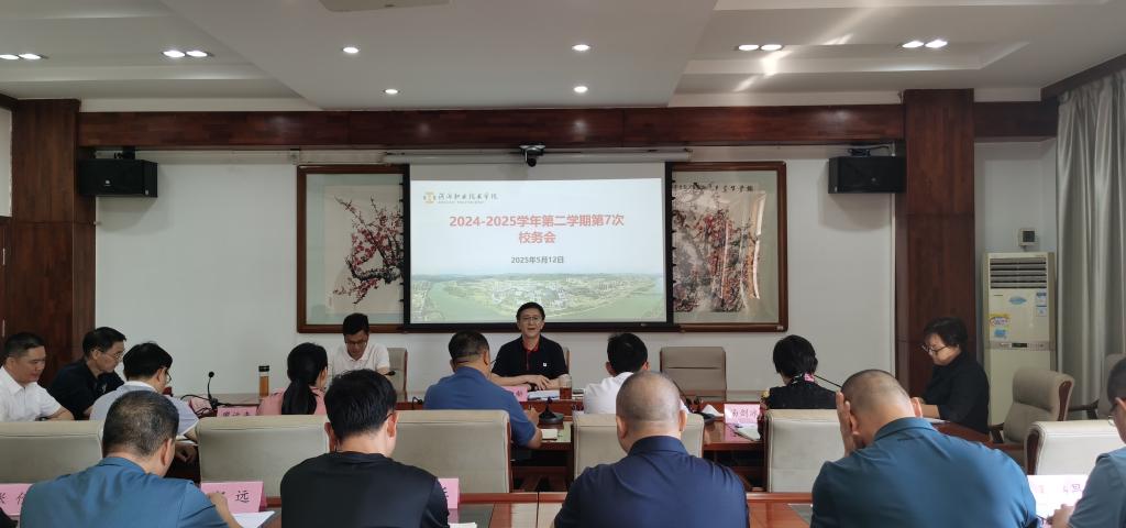 5月12日,学校召开本学期第七次校务会。校领导及各处室、院部负责人,各二级学院党总支副书记以及有关重点岗位负责人参加会议。会议由学校党委副书记、校长刘贻新主持。
