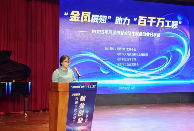 为深入落实“百万英才汇南粤”行动计划,大力开展“巾帼就业创业促进行动”,6月19日,市妇联、市人社局、河职院、市女企协在必一手机登录入口演播厅联合开展“金凤展翅”助力“百千万工程”河源市女大学生就业创业服务活动。市妇联党组书记、主席张晓玲,必一手机登录入口副院长姚家芳,市妇联党组成员、副主席叶倩,市人社局四级调研员刘志锋,市女企协会长倪丽君出席活动。市妇联、市人社局相关科室负责人,市女企协女企业家代表,河职院师生代表200多人参加活动。