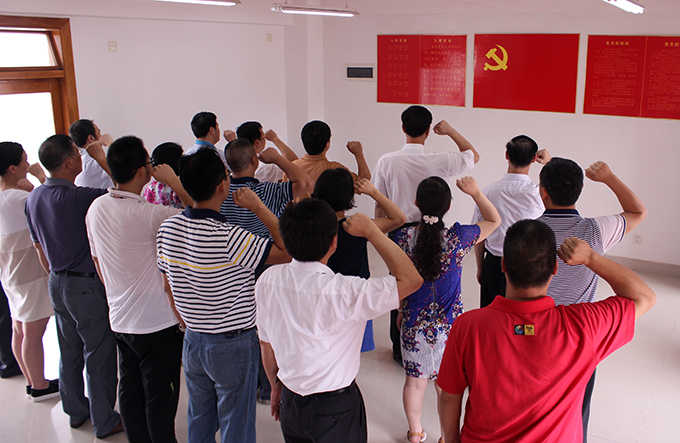 在党委书记段邦贤的引领下,党员领导干部面对党旗,庄严宣誓。在激昂洪亮的宣誓中,党员干部们重温了当年入党时的决心和信念,深刻地感受了身上的责任和使命,并再次铿锵有力地做出了共产党员的庄严承诺。