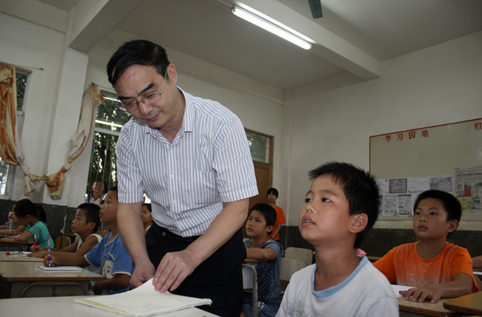 抵达觉民小学,赖小景一行走进“三下乡”教育帮扶团队开展的课堂,深入了解课程内容并与小朋友们亲切交流。在电子维修室里,赖小景向志愿者们询问了活动开展的情况,对义务维修队通过上门走访和设点维修的方式表示赞许并提出建议。紧接着,赖小景查看了新闻宣讲队的工作情况,并提议新闻宣讲队在宣传过程中要以纪念抗日战争胜利70周年为契机,组织当地村民观看爱国电影,弘扬爱国主义精神。慰问中,赖小景对志愿者们的工作给予了高度肯定,并强调志愿者们要在实践中念好真经,让实干成为一种人生气度;要在奉献中晒黑皮肤,让似火的骄阳考验钢筋铁骨。他鼓励志愿者们要突出“服务”这一宗旨,多为群众办实事、办好事,用实际行动传播青春正能量。