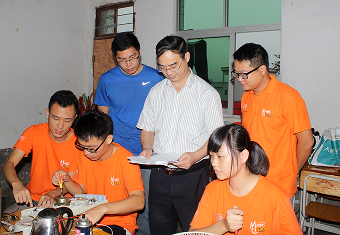 赖小景副校长向义务维修队志愿者了解电器维修情况