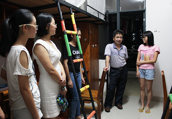 915晚,唐汉芳副校长在人文学院相关负责人和辅导员的陪同下走访人文学院新生宿舍,看望2015级的新生。