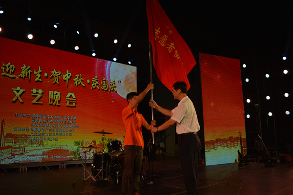 | 校党委书记段邦贤为消防志愿者协会授旗 |