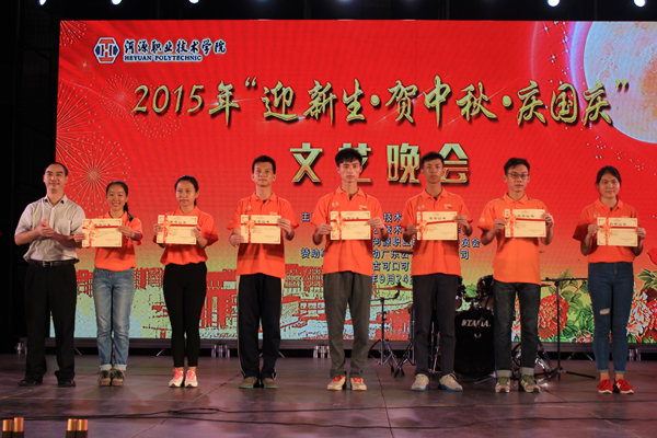 9月24日晚,我校于贤能广场隆重举行2015年“迎新生•贺中秋•庆国庆”文艺晚会。学校党委书记段邦贤、副校长赖小景,部分处室、院部的负责人以及大一全体新生参加了此次晚会。晚会分为志愿者表彰和文艺表演两个部分进行。