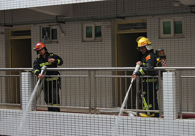 为增强2015级新生的消防安全意识,提高自防自救能力,9月23日下午,我校联合河源市公安消防支队在B区学生宿舍进行消防实操和紧急疏散演练。陈农心副校长、河源市公安消防支队文昌中队廖拓指导员,学工处、资产后勤处、人文学院和机电学院等相关部门人员出席演练现场。住在B区学生宿舍5栋的约1000名新生参加了紧急疏散逃生演练。