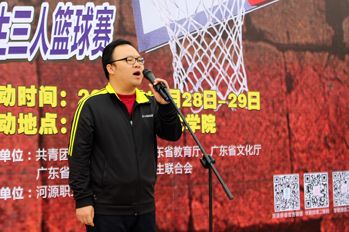 | 团省委学校部陈前副部长宣布三人篮球赛开幕 |