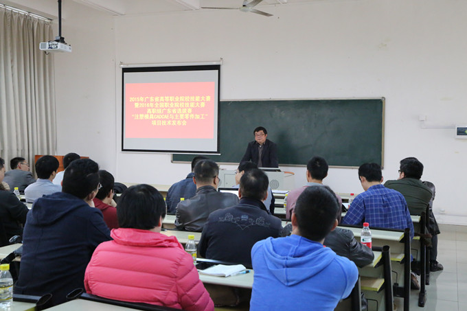 12月13日下午,2015广东省高职技能大赛暨2016年全国职业院校技能大赛高职组广东省选拔赛“注塑模具CAD/CAE与主要零件加工加工”技术发布会在我校召开。专家组组长宋小春教授,我校机电工程学院负责人、教务处相关负责人、模具专业相关老师,各个兄弟院校的领队和指导教师参加了此次会议。