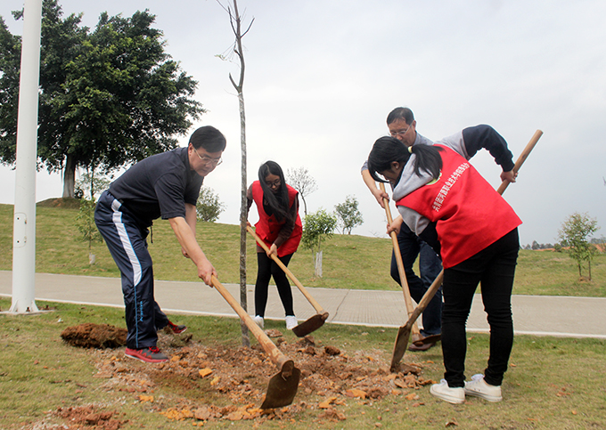 春风送暖,雷锋志愿精神在阳春三月里熠熠生辉。3月7日,我校于图书馆后山开展以“义务植树,美化校园”为主题的植树活动。我校党委书记段邦贤、校长陈德清率领部分中层干部、学生志愿者共同参加此次活动。