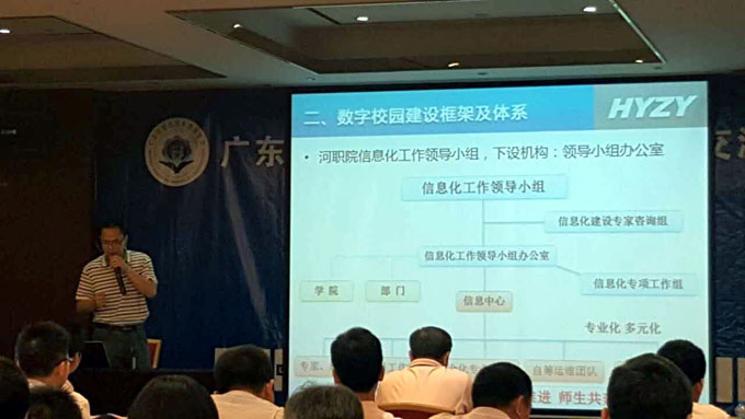 2015年6月10日-11日,广东省职业院校数字校园建设交流研讨会在深圳举行,我校信息中心主任杨文等2人参加了会议。杨主任在会上作经验介绍。