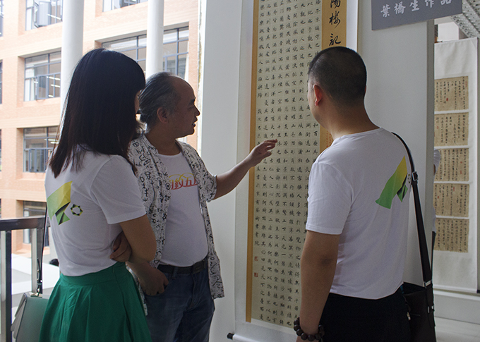 戴学映老师与校友观看作品