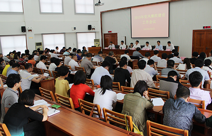 4月2日下午,我校在行政楼C108召开2015年党风廉政建设工作会议,学习贯彻传达习近平总书记系列重要讲话、十八届中央纪委五次全会以及省市相关纪检监察工作会议精神,并举行党风廉政责任书签订仪式。