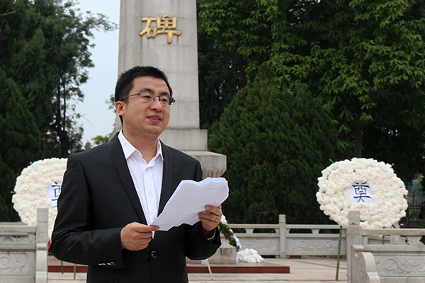 随后,校团委负责人发表讲话,他指出,缅怀先烈,应做到胸怀理想,追求远大,敢于担当,无私奉献。他希望当代大学生要自觉肩负起时代赋予的重任,传承革命先烈遗志刻苦学习,锤练自我,树立正确的世界观、人生观和价值观,并把这种胸怀时代的理想信念具体落实到做好学习成长中去。
