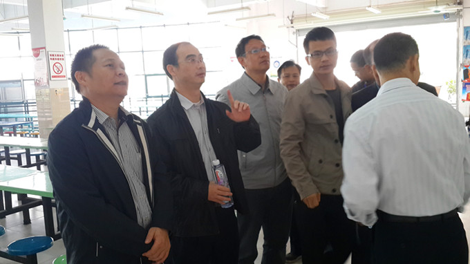 赖小景副校长向省检查组汇报了我校的基本情况和学生食堂的相关情况。省药监局吴有声处长一行现场查看了食堂的证照、管理制度、工作流程和台账,逐一检查了预进间、储物间、冷库、点心制作间、烹饪区、销售窗口及就餐区。吴处长充分肯定了我校对学生食堂工作的高度重视,对第二食堂的就餐环境、卫生条件和设施设备表示满意。同时也指出了主食堆放不够规范、上墙制度没有及时更新、筷子摆放不合理、个别照明和通风设施老化等问题。吴处长强调,食品安全是学校的生命线,学校和承包企业要把食品安全作为工作重中之重,严格按照法律法规来经营和管理学生食堂,实现管理的程序化和规范化。要攻坚克难,注重实绩,高标准、严要求地落实创建的各项任务和指标,以优异的成绩完成“广东省食品安全示范学校食堂”的创建任务。