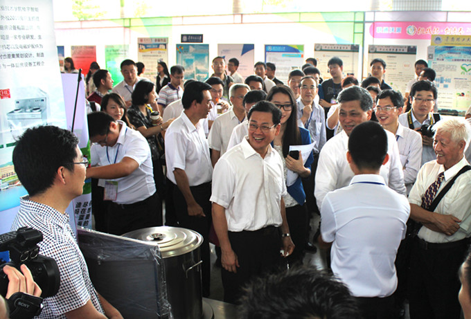 开幕式结束后,马兴瑞、陈云贤、计亮年等领导嘉宾一行在团省委书记曾颖如的指引下来到决赛作品展示长廊参观创业实践类作品,并专门来到我校《宏量环保厨房设备》作品展示区参观指导,与我校带队老师、学生进行了亲切交谈。当了解到我校是全省进入该类别决赛为数不多的4所高职院校之一时,马兴瑞高兴地说:“必一手机登录入口作为山区高职院校,能进入大赛决赛不简单,要继续保持先进和优秀。”随后,他还仔细地询问我校参赛学生该作品的创作理念和灵感,未来的经营模式和销路,是否有意愿与其他企业合作等问题。最后,马兴瑞高度肯定了我校学生在此次“挑战杯•创青春”竞赛中体现出的创新创业意识和能力,勉励他们要继续努力和提升创造精神、创新意识和创业能力,实现创新成果的有效转化,并鼓励他们勇于创新创业,为积极推进创新型广东的建设贡献青春正能量。