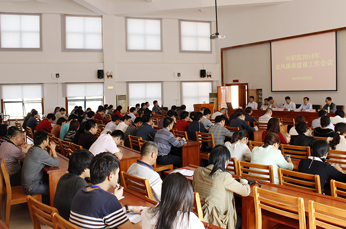 3月26日,我校召开2014年党风廉政建设工作会议。会议由校长刘安华主持,校领导班子成员,行政副科以上及院部专业主任以上人员,各党支部纪检委员参加会议。会议总结了我校2013年纪检监察工作,并对2014年党风廉政建设工作进行了全面部署,确保为学校的各项事业的推进和发展保驾护航。
