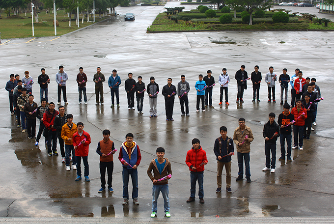 3月7日是各地高校盛行的女生节。在这天,我校12应用电子1班的46名男生用三天时间秘密策划了一场献花活动,为班上唯一的女生献上了一份特殊的礼物。该班男女生比例为46:1,“得天独厚”的条件让班上唯一女生黄同学拥有了一个弥足珍贵的回忆。