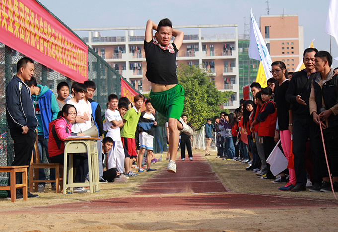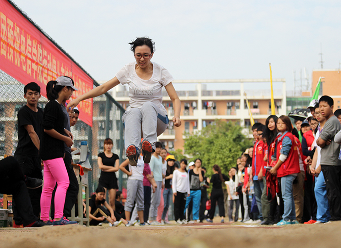 在学生组跳远决赛中,工商学院的陈雁凭借第一跳与第三跳都是5.64米的成绩力压只在第三跳中跳出5.64米的廖兴繁夺得男子组冠军;而同样来自工商学院的孙晓纯以4.12米的佳绩勇夺女子组冠军,以0.01米的距离险胜同学院的陈文颖,赢得该项比赛二连冠。