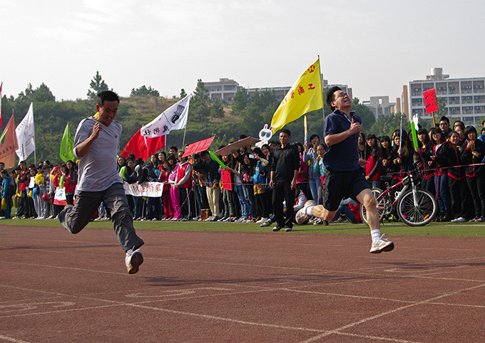 随后,教工组男女子60米决赛相继进行,机电学院陈东湖、继教工会凌美雪以7″74和9″80的成绩分获两项比赛冠军。