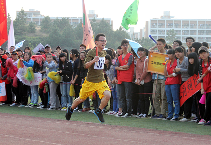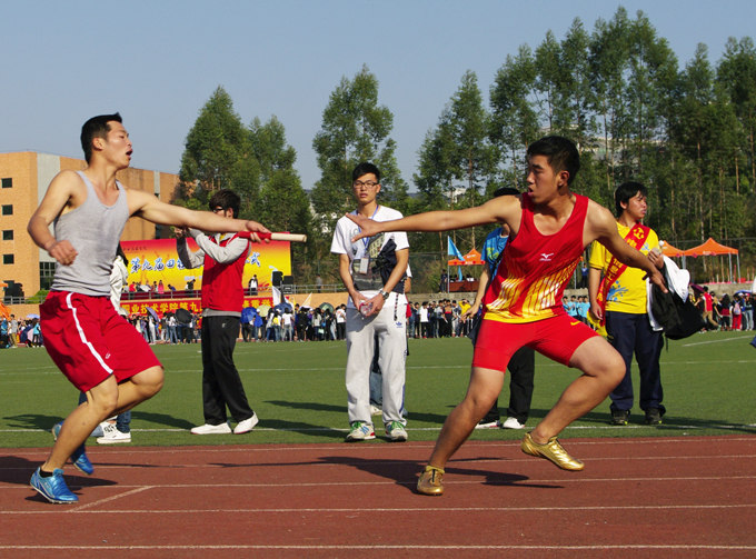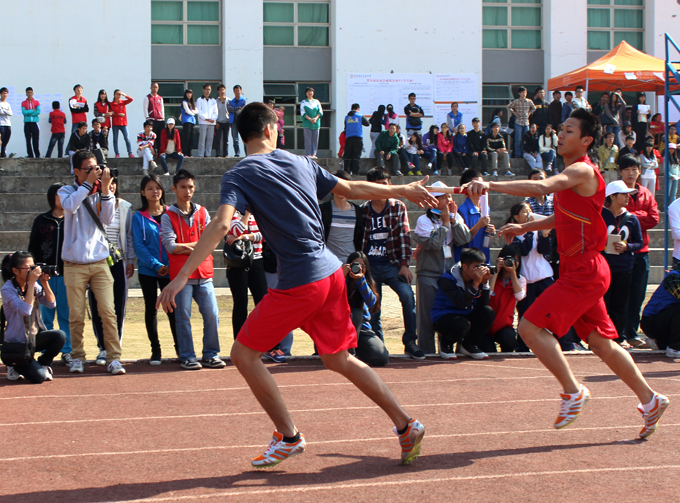 下午3点,本届运动会迎来最后一个比赛——学生组男女子4×100决赛。在拉拉队员激情洋溢的呐喊声中,电信学院代表队、艺术学院代表队以48″15、1′00″85的成绩瓜分男女组比赛冠军。