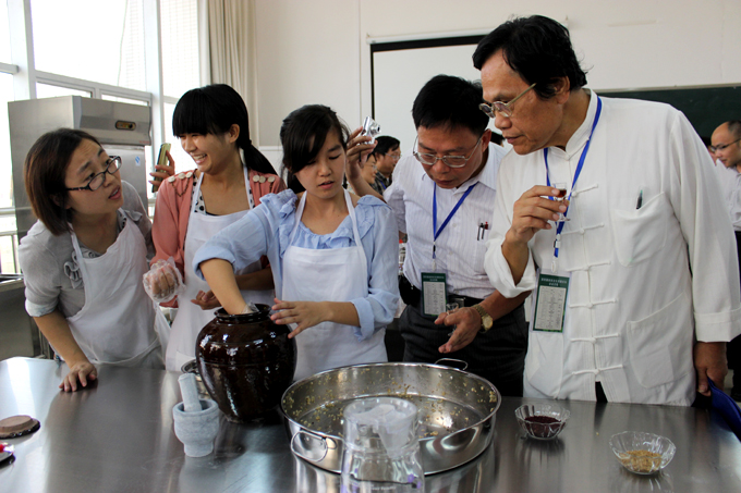 | 领导学者参观学院黄酒酿造实训室 |
