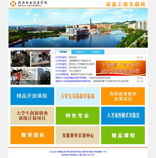 据悉,我校在广东省同类院校中率先推出质量工程综合管理系统,该系统包括精品开放课程、大学生实践教学基地、高等教育教学改革项目、大学生创新创业训练计划项目、特色专业、人才培养模式实验区、教学团队、实验教学示范中心、精品课程等九个子项目,系统研发和设计主要由信息中心两位老师在周末两天时间内合作完成,采用国际流行的软件设计理念和UI设计风格。