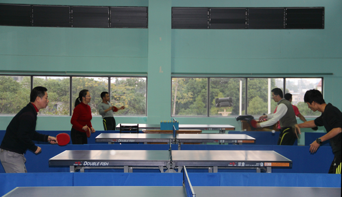 12月5日下午,在唐汉芳副校长的带领下,我校教职工乒乓球队、羽毛球队到新丰江电厂和该厂的职工球队进行交流。