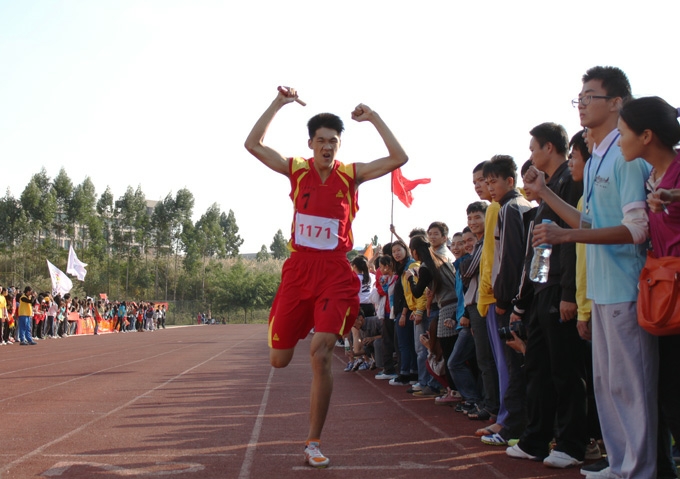 比赛时,詹旭冬一直领先,抛开了其他运动员,以绝对的优势首位冲到了终点。来自机电学院的陈华定和电信学院的李煌基,分别获得第二第三名。