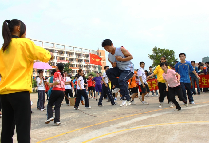 电信学院有老师表示:“我校把跳绳这种往日的游戏列入校运会的比赛中,让更多的老师参加到运动中来,感受运动带来的快乐,也增加了老师之间的交流。”