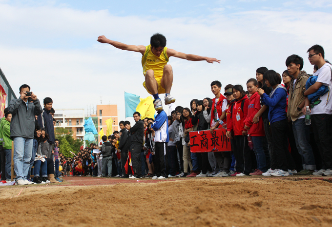 同一时间,学生组男子三级跳远决赛如期举行,来自艺术学院的谢鹏祥以12米49的成绩打破工商学院3年的垄断,成为该项目的“新科状元”。
